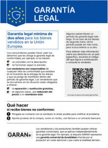 L’avís harmonitzat és un avís obligatori al punt de venda, destinat a sensibilitzar els consumidors sobre els seus drets de garantia legal.